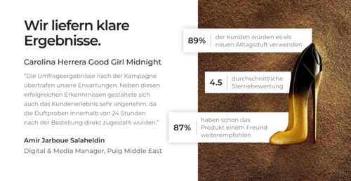 Die Stärke des Online - Samplings liegt darin, dass es überall online integriert werden kann. Wir sehen, da ss Marken die Grenzen austesten und mit neuen Technologien experimentieren, um die gesamte Sampling - Reise zu verbessern und mit Verbraucher:innen überall in Kontakt zu treten. Wir integrieren uns in jede Plattform, auf der sich das Publikum unserer Marken befindet, sei es Meta, Snapchat, TikTok oder Pinterest . Wir können aber auch auf Dating - und Gaming - Plattformen für Produktproben werben. Wir arbeiten öfters mit programmatischen Werbepartnern wie Teads, MOBKOI und Seedtag und exklusiv mit Retail Partner n wie Douglas und Flaconi zusammen. Außerdem haben wir eigenständige Sampling - Communities im Vereinigten Königreich und den USA mit führenden Verlagen – - etwas, was ich auch gerne in Deutschland aufbauen würde! Digitales Sampling kann also so einfach sein , wie das Einbinden eines Aufrufs zur Probebestellung in einem Influencer - Post oder einer programmatischen Anzeige. Aber es kann auch wirklich innovativ werden, sowohl kreativ als auch technologisch gesehen, indem es sich in neue und aufregende Umgebungen wie das Metaverse, AR - gesteuertes Virtual Try - On (VTO) und sprachgesteuertes Sampling integriert. Seit der Integration von VTO in unseren Sampling - Aktivierungen haben wir unglaubliche Ergebnisse gesehen. Für die Kampagne einer bekannten Make - up - Foundation mit unterschiedlichen Farbtönen haben wir eine 27% - ige Verbesserung der Ergebnisse bei der Farbübereinstimmung im Vergleich zu Kampagnen ohne VTO festgestellt. Dies hat sich auch auf die Verkaufszahlen ausgewirkt, denn wir sahen darüber hinaus eine 57% - ig e Zunahme des Umsatzes dieses Produktes nach dem Testen. Im letzten Jahr haben wir auch eine Partnerschaft mit Amazon Alexa geschlossen, um sprachaktiviertes Sampling zu ermöglichen. Warum? Weil wir den Trend von Sprachsuchen nicht ignorieren konnten, und es als mögliche Aktivierung zugänglich machen wollten. Es geht uns nicht nur darum, das Sampling - Erlebnis generell zu verbessern; es geht auch darum, einen echten Einfluss und Innovationspotenzial für unsere Marken zu erzielen, um ihre Proben auf dem best en und kreativsten Weg zu den potentiellen Kunden zu bringen